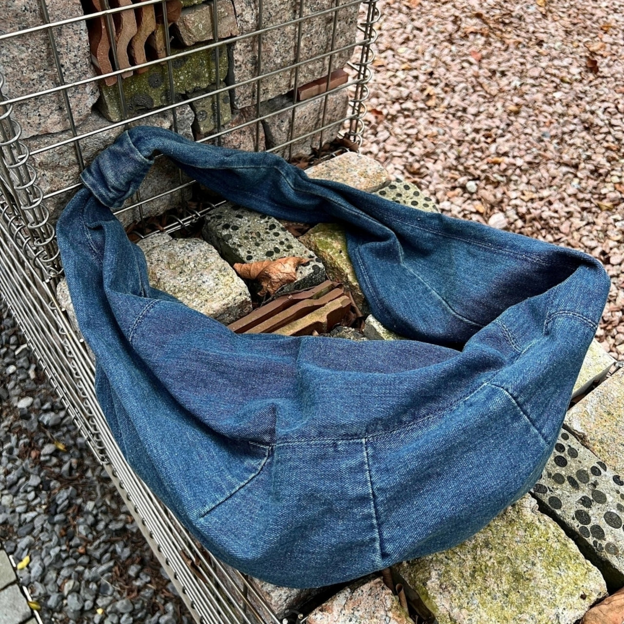 やわらかいデニム生地を使用したダンプリングバッグ。