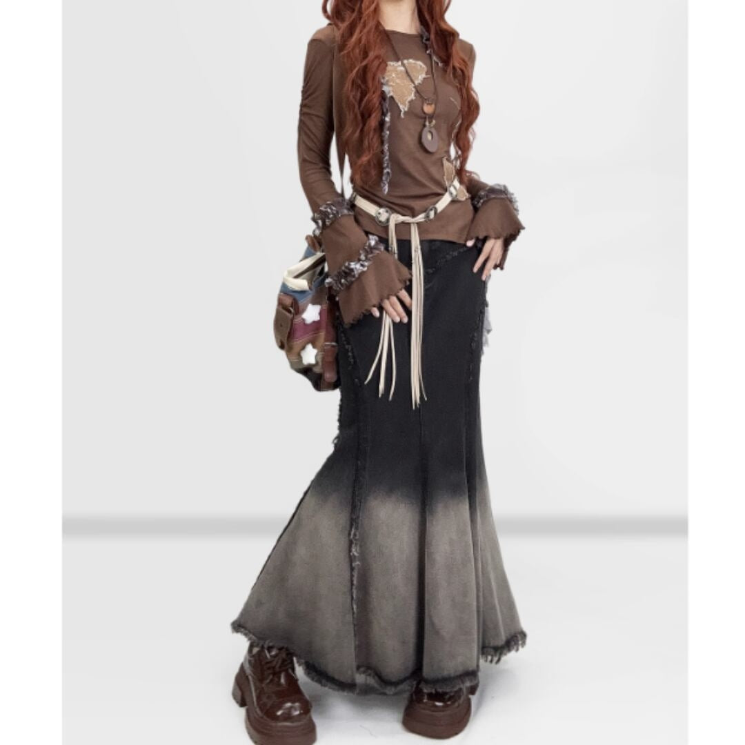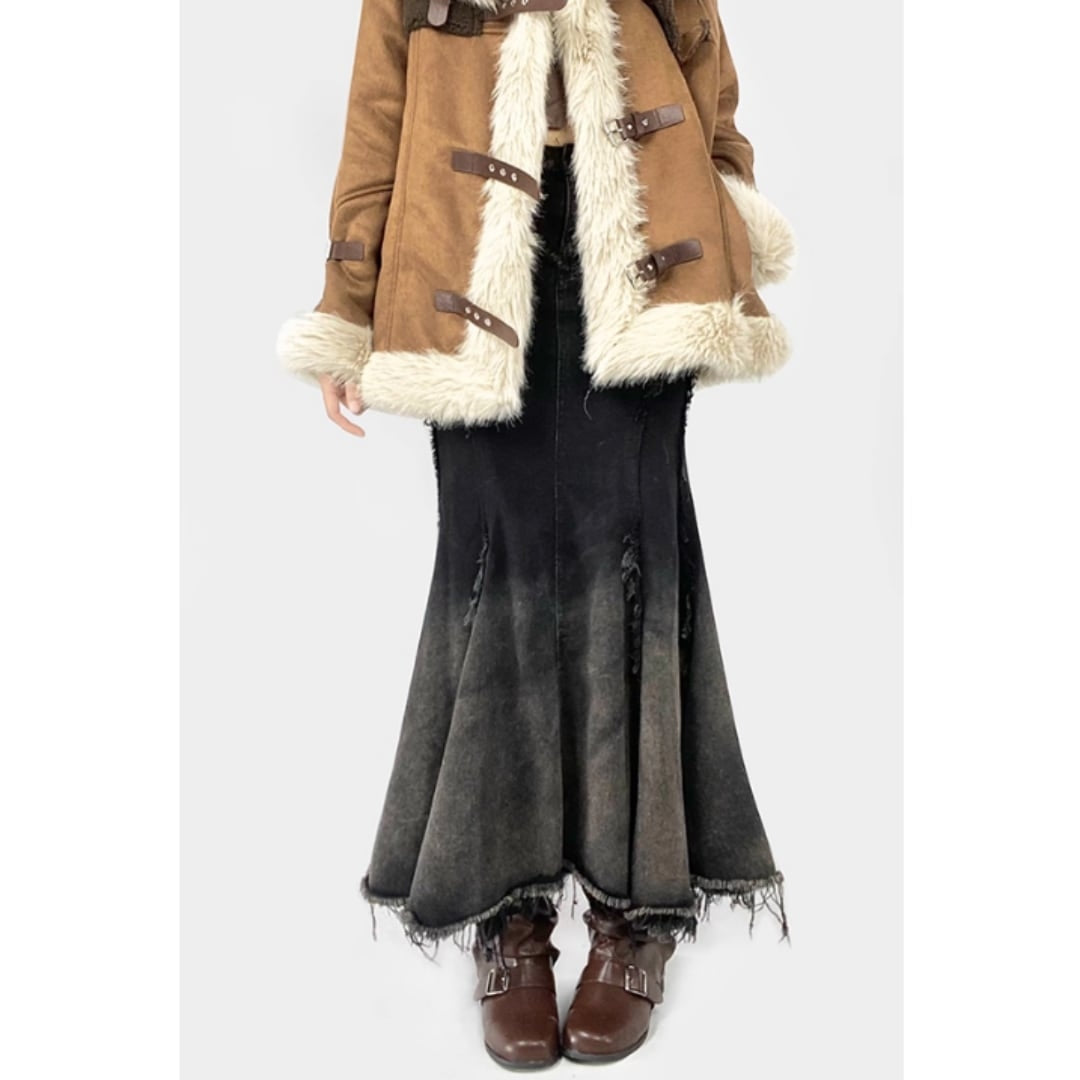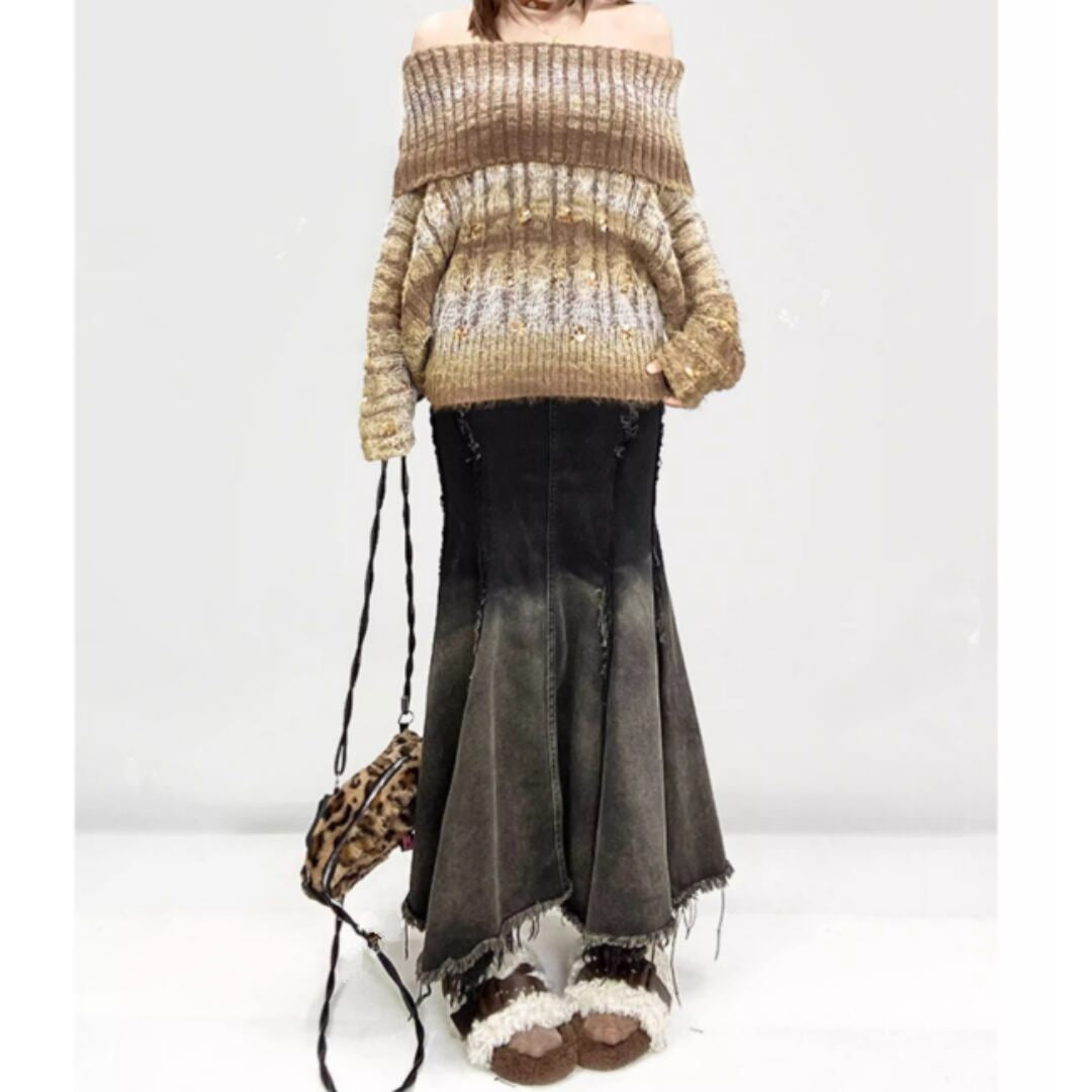 女性らしいフィッシュテールシルエットで魅力的なデニムスカート。
