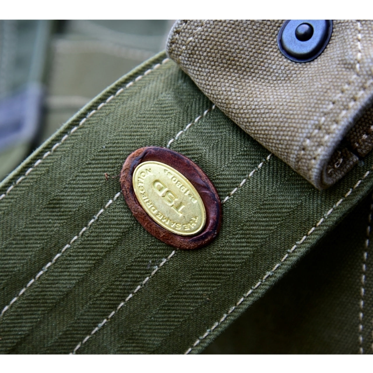 機能的でおしゃれなパッチワーク柄のデニムメッセンジャーバッグ。