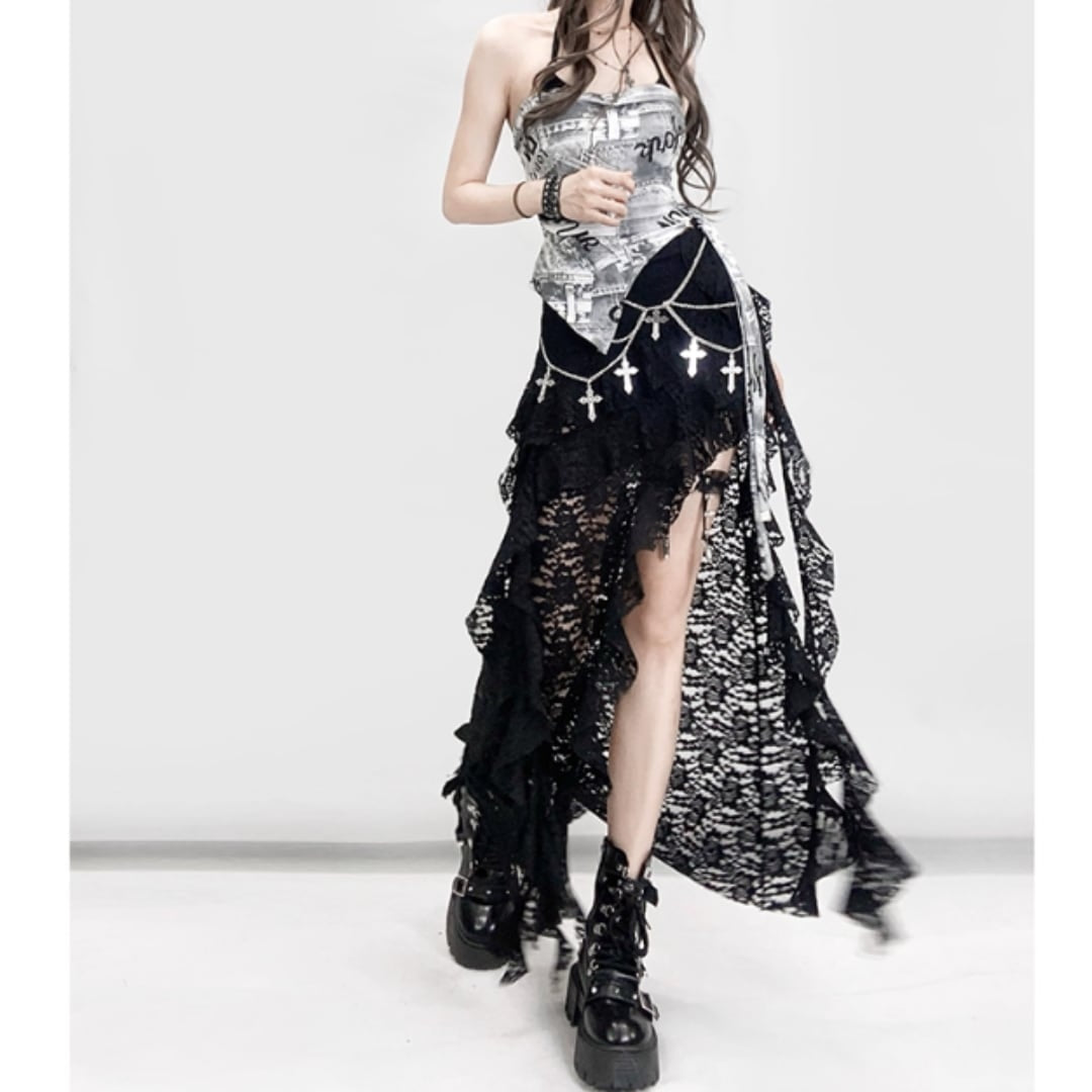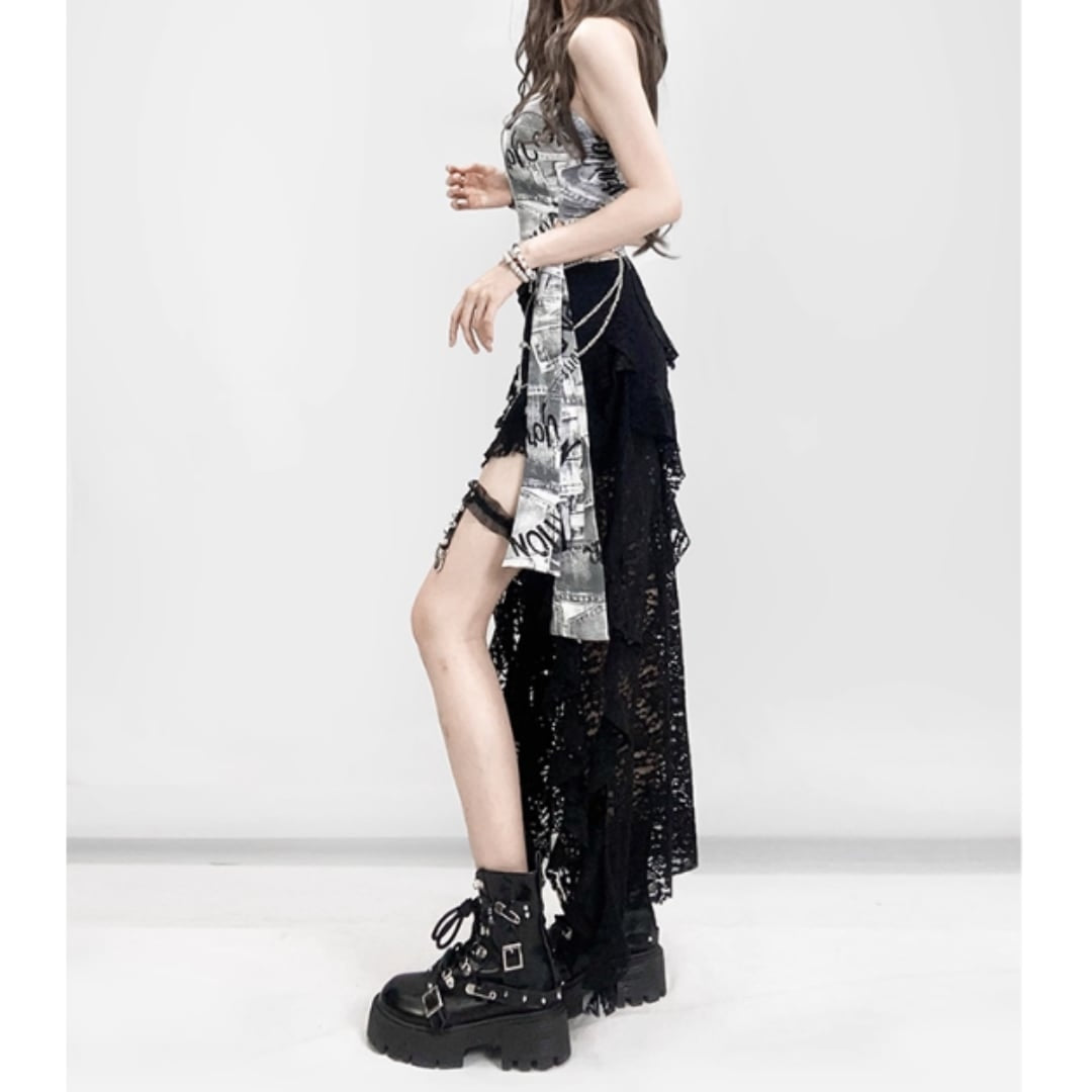 Graphic print bare top E7046